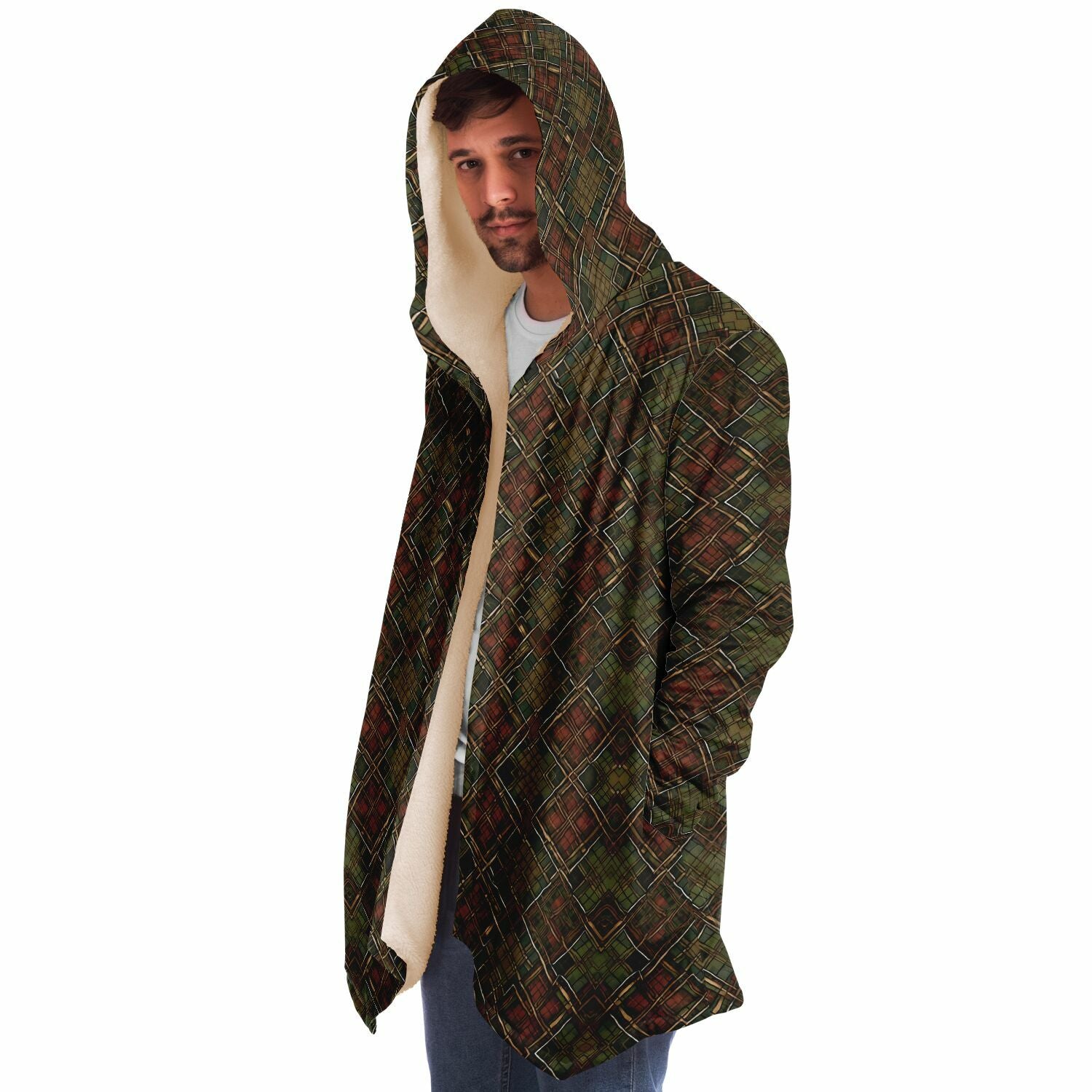 This luxurious cloak is made from an ultra-soft premium microfiber fleece lining. The outside is made with a micro-mink polyester fabric that allows the print to be high definition with vibrant colors. Featuring two deep side pockets to keep your belongings safe and your hands warm.